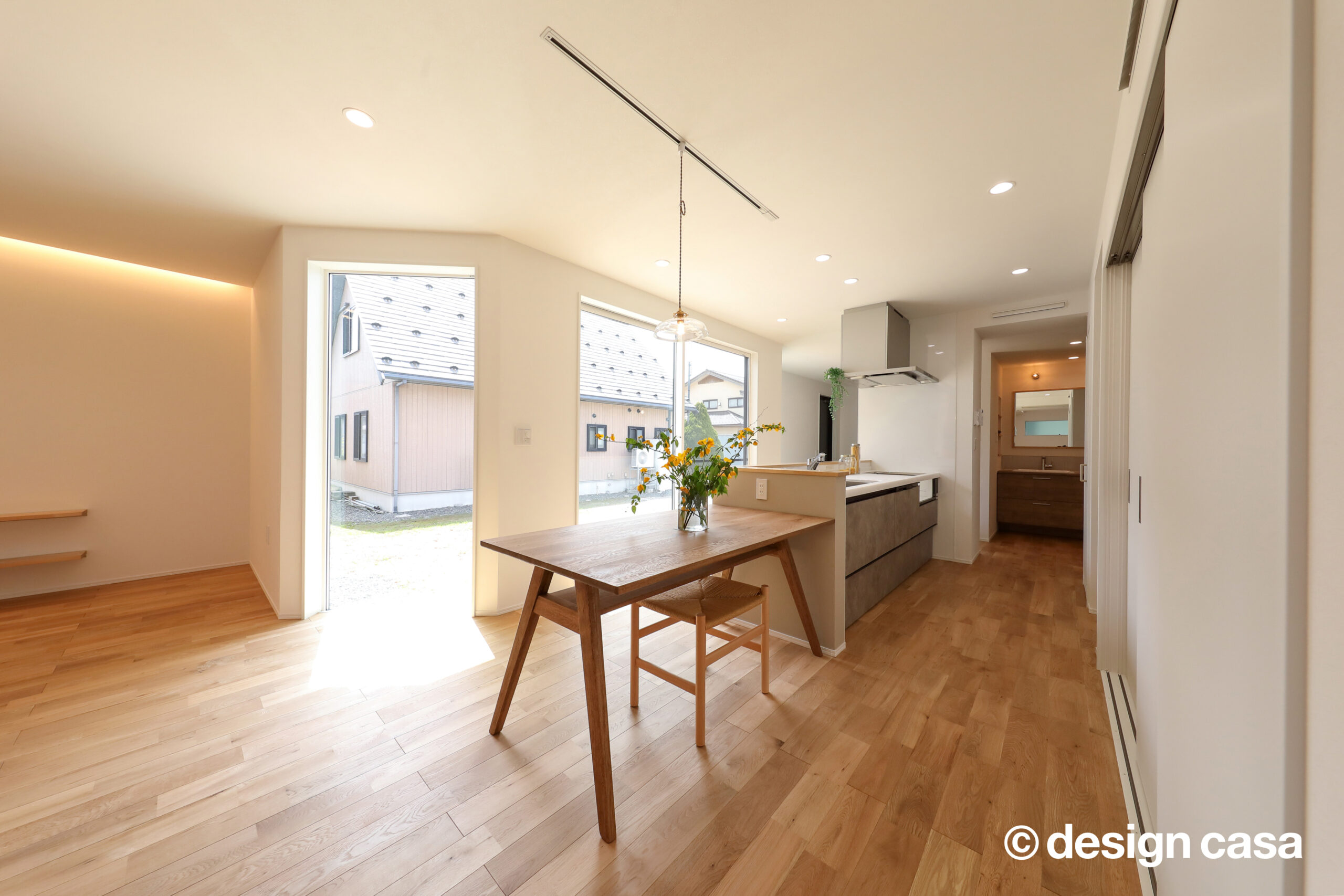 セルローズファイバー断熱材と漆喰を採用し、空気が滞らない状態をつくることで、長時間いても疲れにくい住空間を実現します。 -