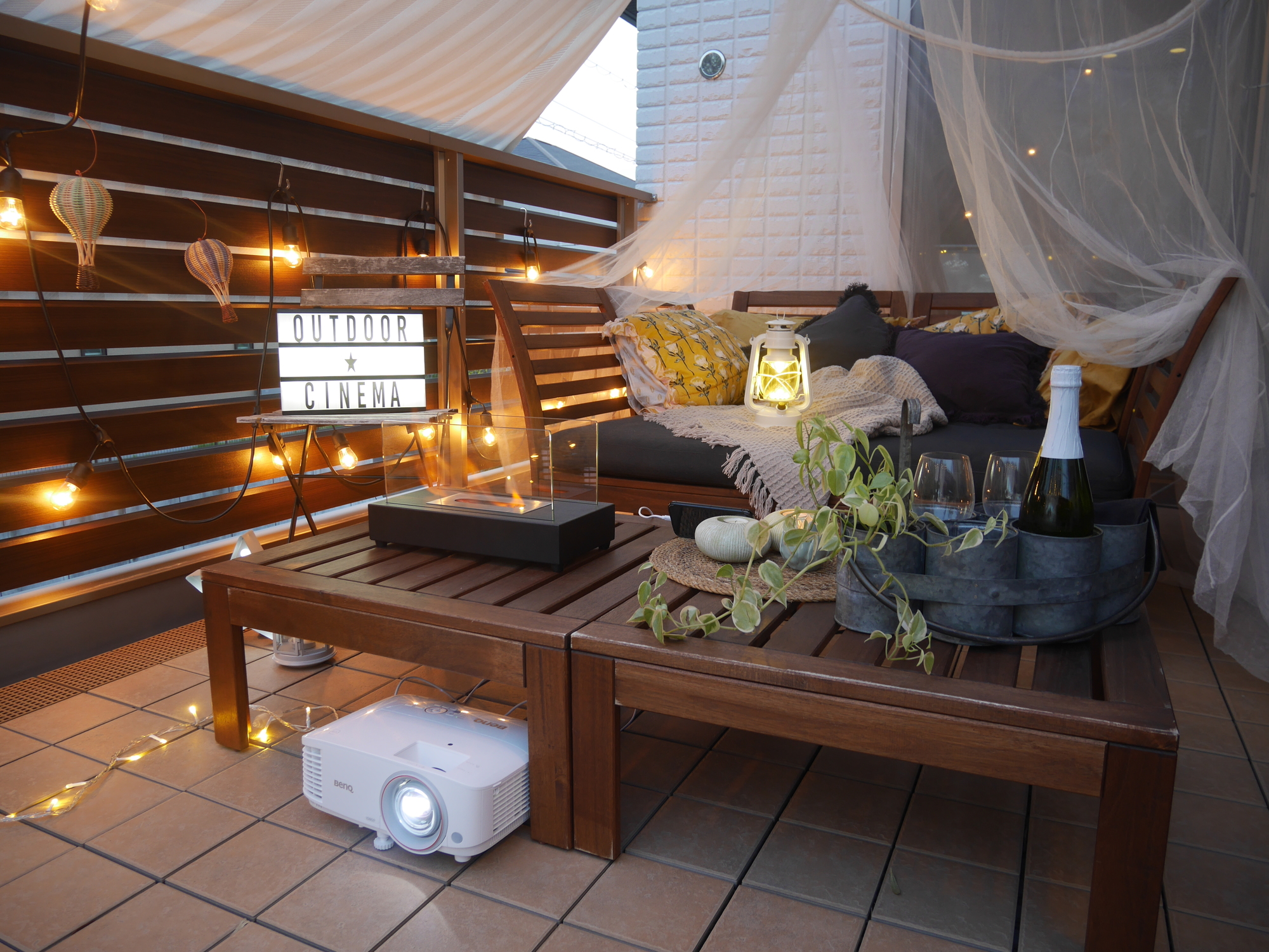 自宅が都市部の場合は周辺に自然の要素が少なく、物足りないと感じるかもしれません。その場合、プロジェクターで自然豊かな森の様子や海で魚が泳いでいる様子、焚き火の風景などを映すことで、アウトドアな雰囲気を演出できます。また、外で映画鑑賞をして非日常感を味わうのもよいでしょう。ただし、映像を映す壁が必要になるため、場所を検討する必要があります。