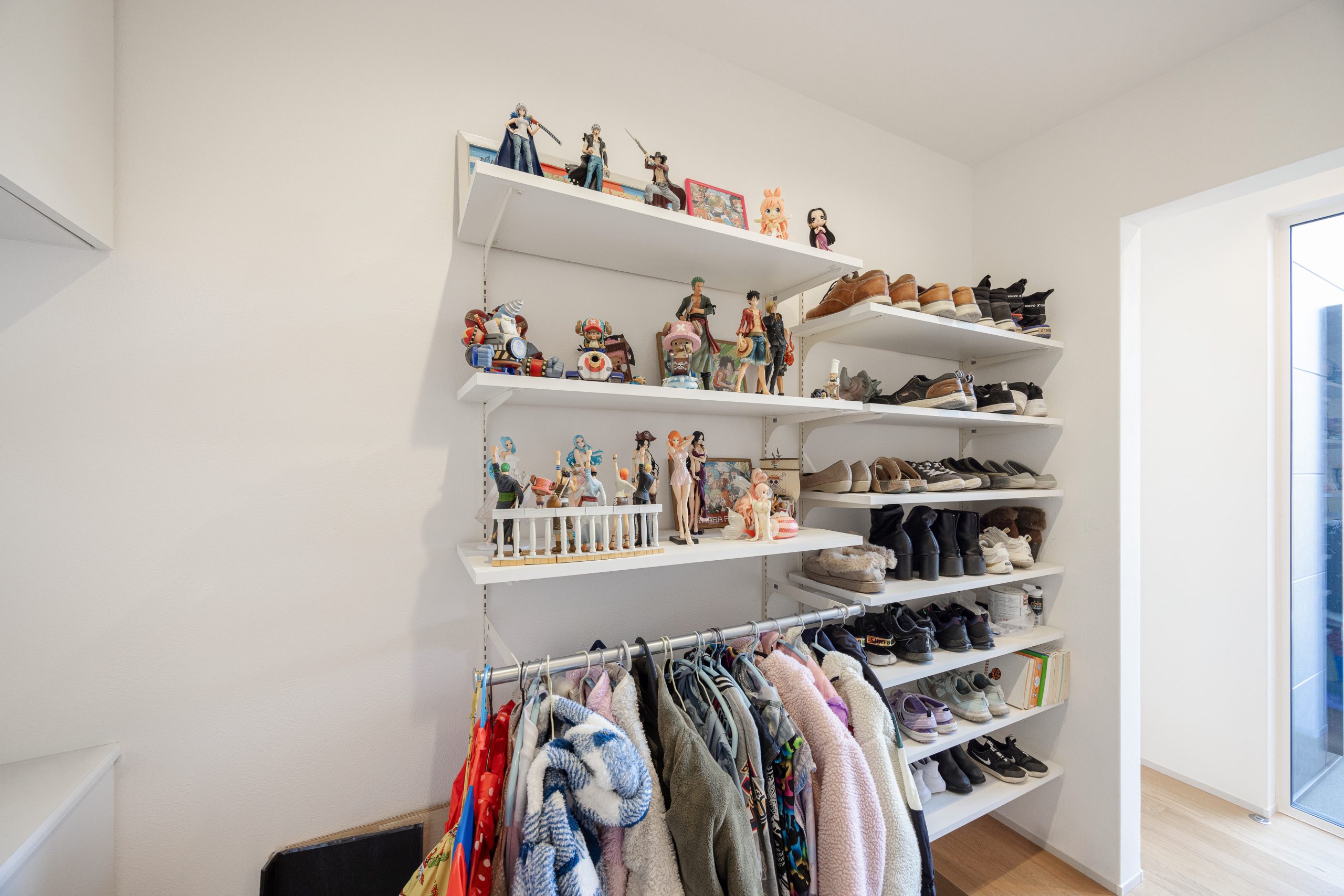 玄関に隣接して設けるシューズインクローゼットは、靴をはじめ雨具やベビーカー、アウトドア用品など、屋外で使う物の収納に便利なスペースです。外の汚れを室内に持ち込まずに済むため、家の中を清潔に保ちやすくなります。十分な広さがあれば自転車などの大型の荷物も収納可能で、屋外での保管に比べて盗難のリスクを減らせるため、防犯面も安心です。