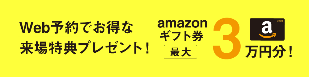 こちらのページから、ご来場の”前日”までにご予約の上ご来場いただいた方に、Amazonギフトカード 最大30,000円分をプレゼント!