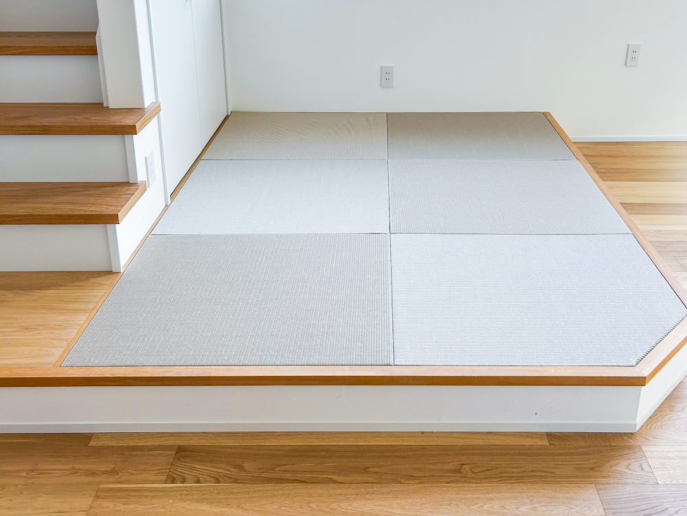 リビングの一角に設けられた小上がりの畳スペース。小さなお子様のキッズスペースとしてや、少し横になって一休みできるリラックススペースとしてなど、様々な使い方ができる便利なスペースに。