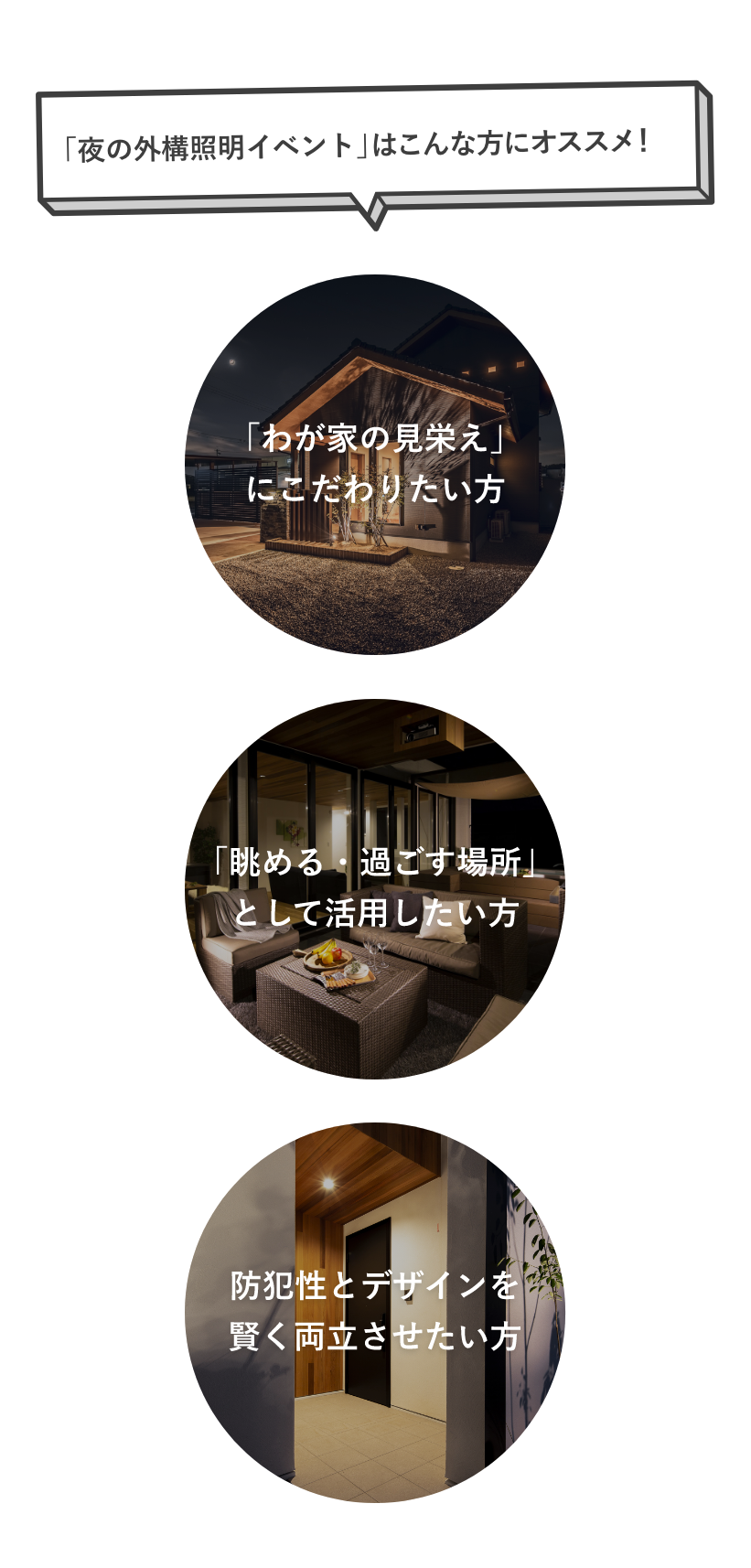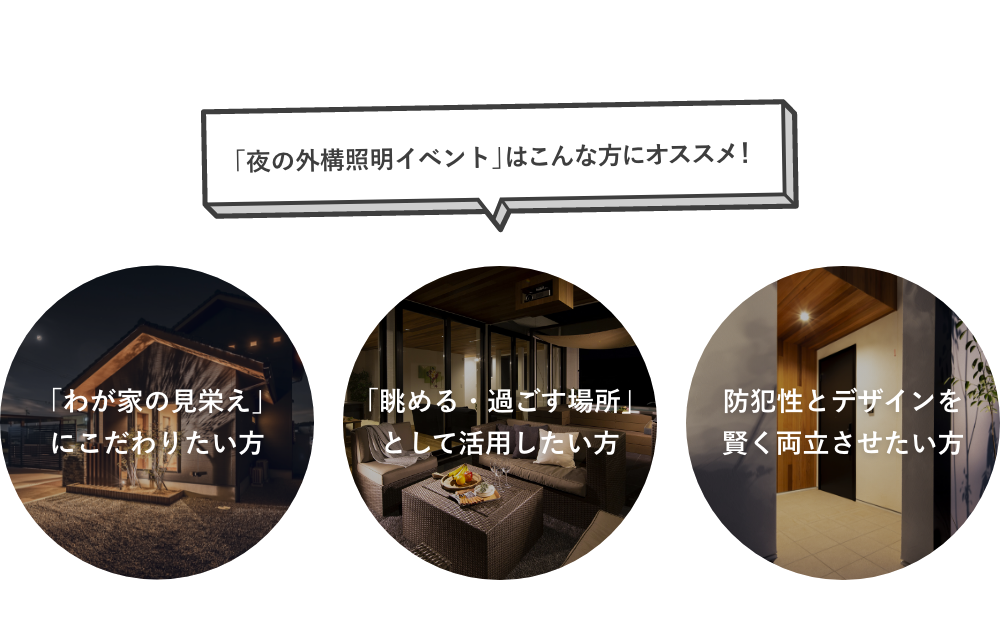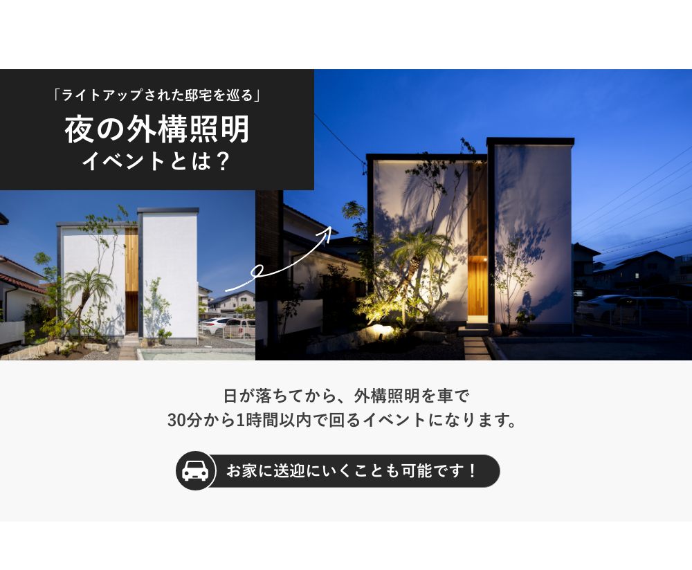澄んだ夜空の下、ライトアップされた邸宅を巡る外構照明見学会。