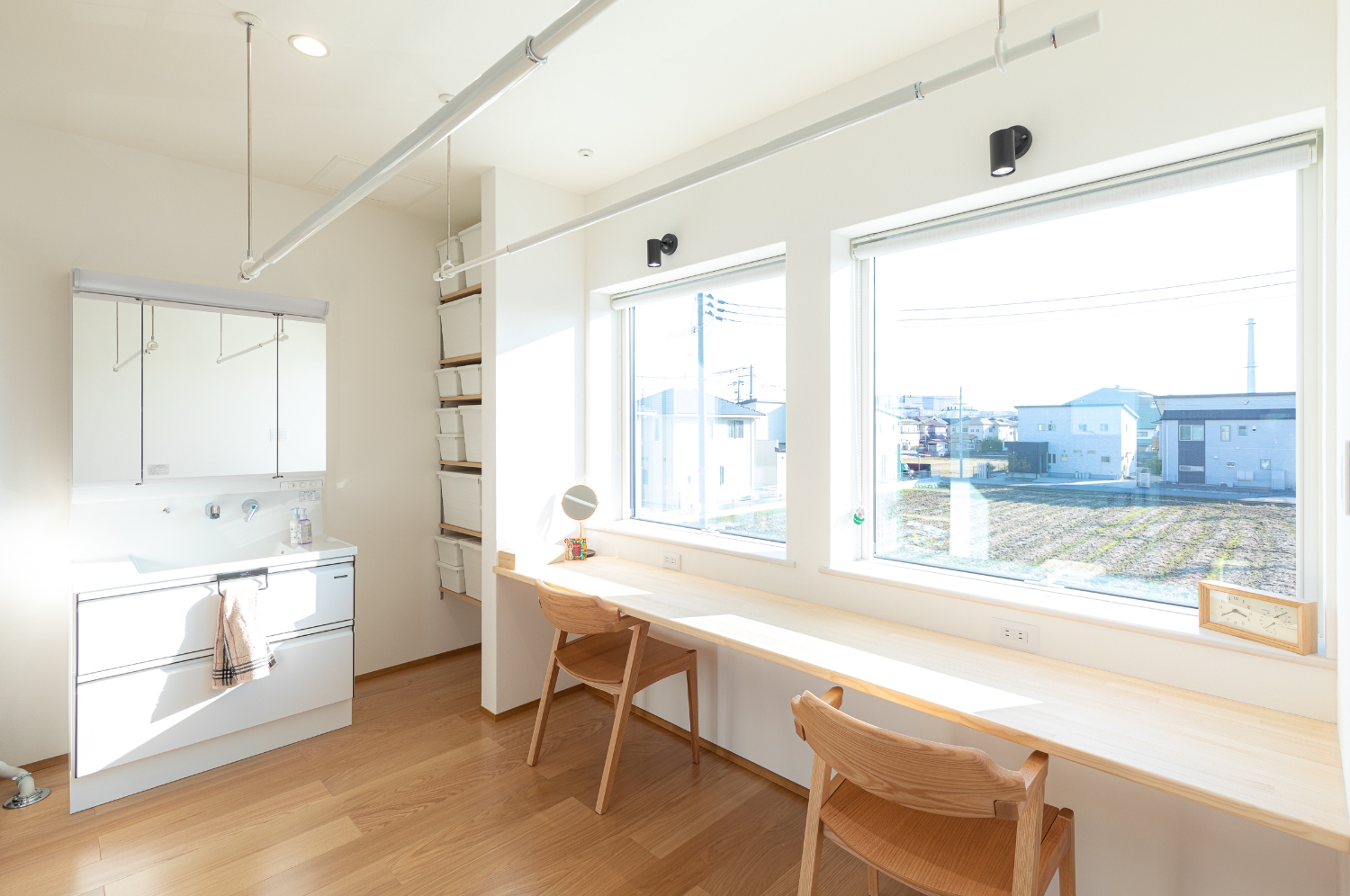 お子様の入浴やお洗濯がラクになる広々としたルームバルコニーのある家。