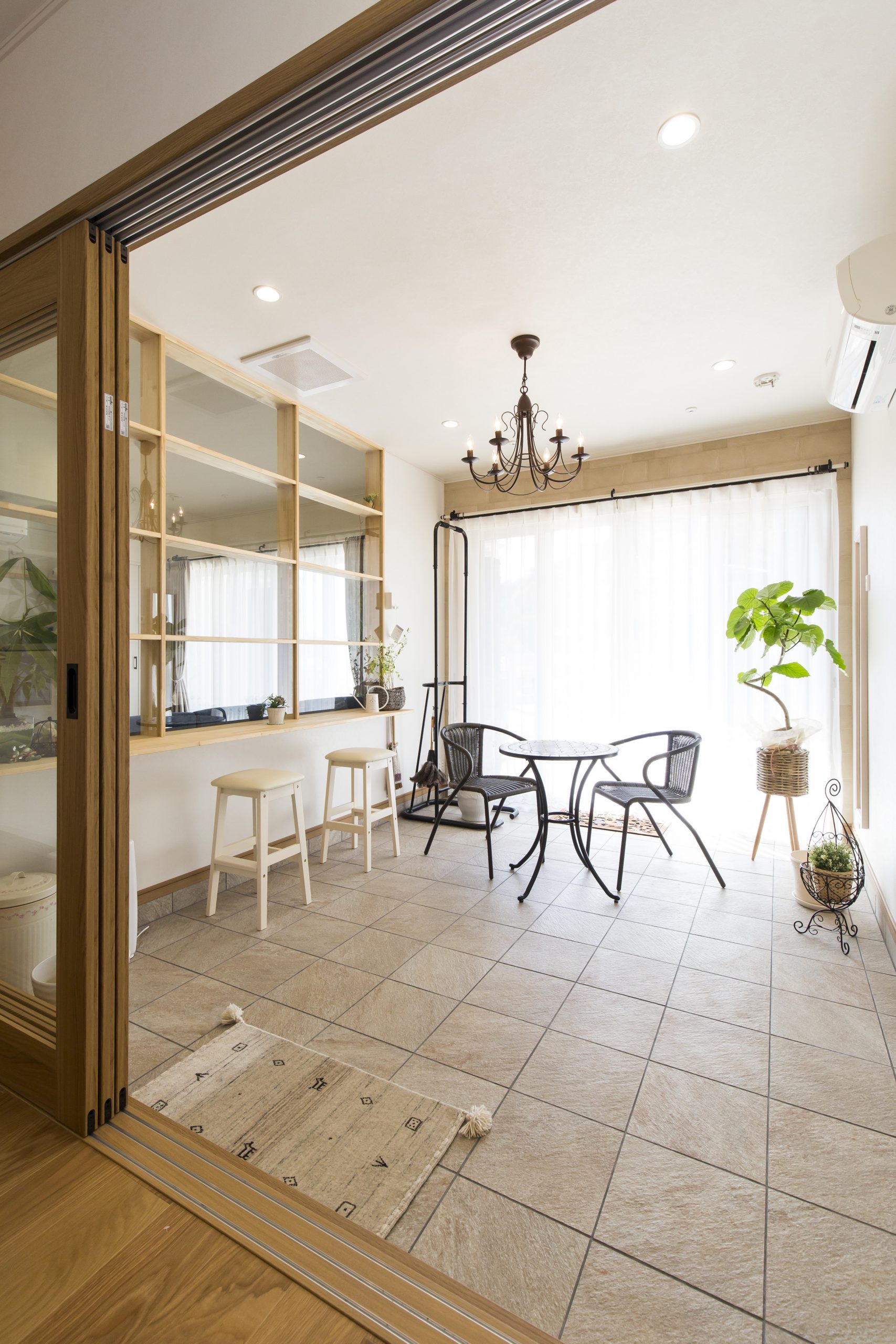 家の中と外に設置されたくつろぎのカフェスペース