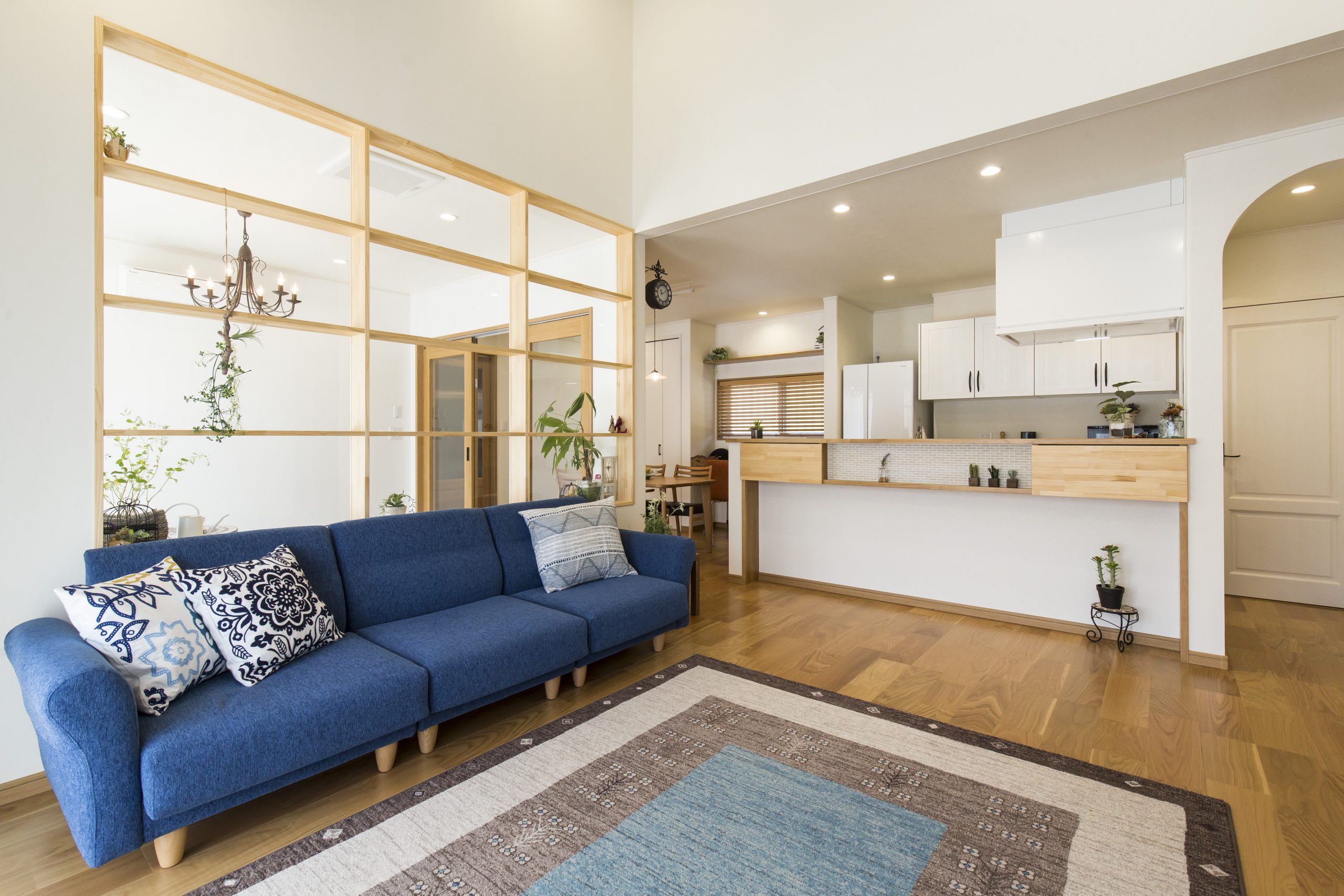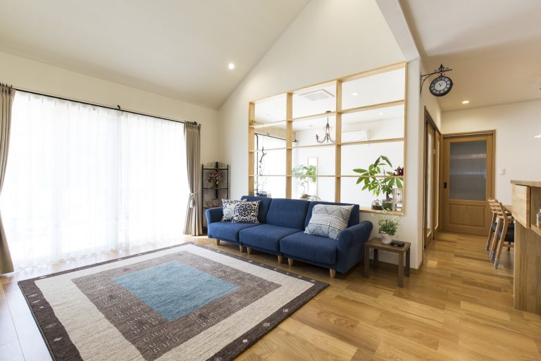 最後に紹介するオーナー様ご夫婦のお家の特徴は、リビングです。オーナー様ご夫婦はもちろん、ご家族やお友達が来た際にくつろいでもらうリビングは、勾配天井を利用した吹き抜けがある広々空間となっています。