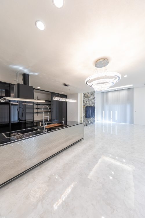 グレーとベージュの配色でスタイリッシュな印象の家にお住まいのオーナー様。室内は大理石タイル、照明はシャンデリア風のライトと、まるでラグジュアリーホテルのような高級感のある住宅です。今回は、この住宅を建てたオーナー様に家づくりのきっかけとなったことや、住まいづくりでこだわった点などについてお話を伺いました。