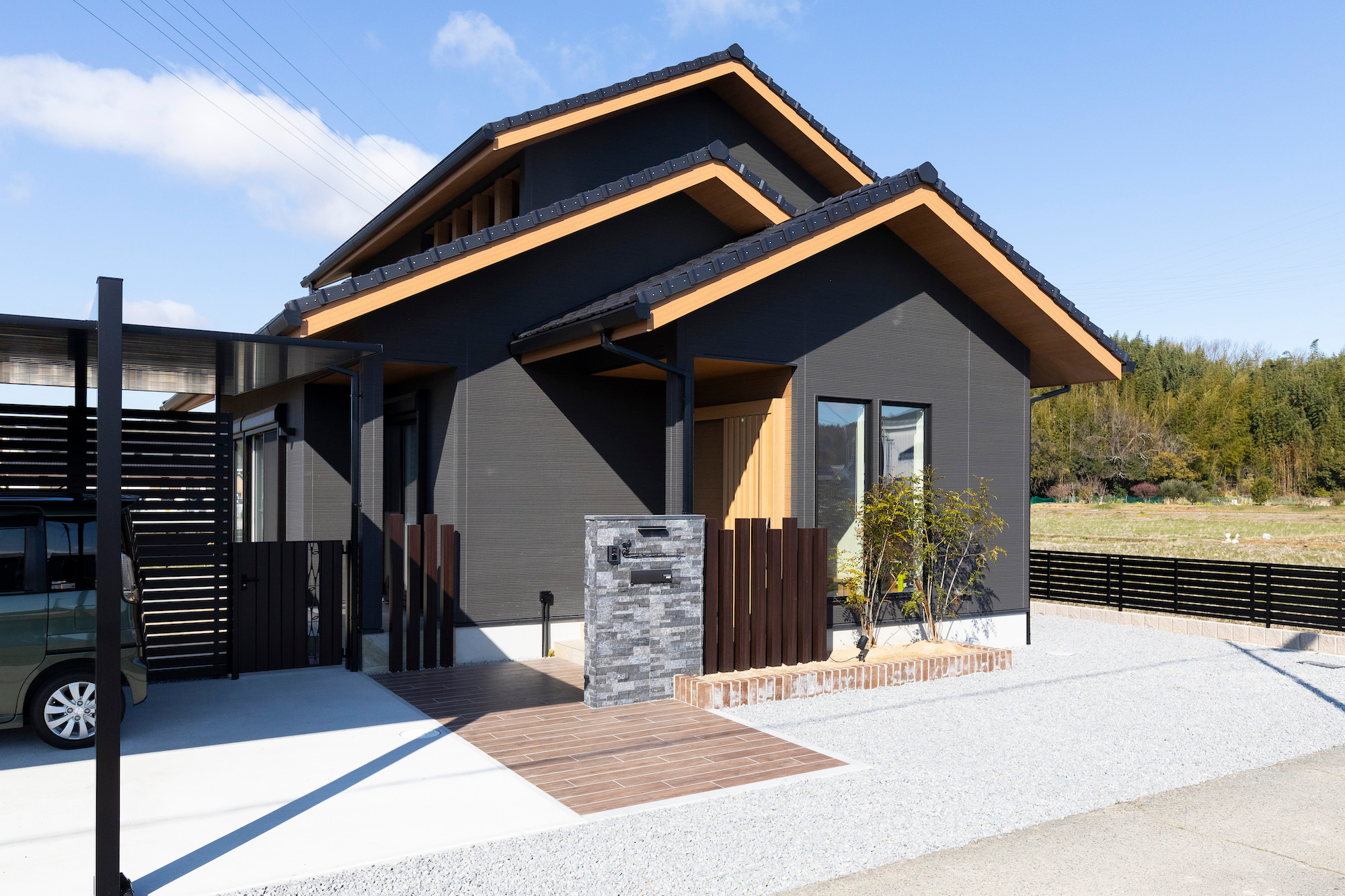 市街化調整区域の中ということもあり、近隣の住宅との距離が離れている今回のお家。そのため、東西南北のどの面も道行く人の視界に入るということもあり、外構計画にもこだわりを持ってお家づくりを進めました。