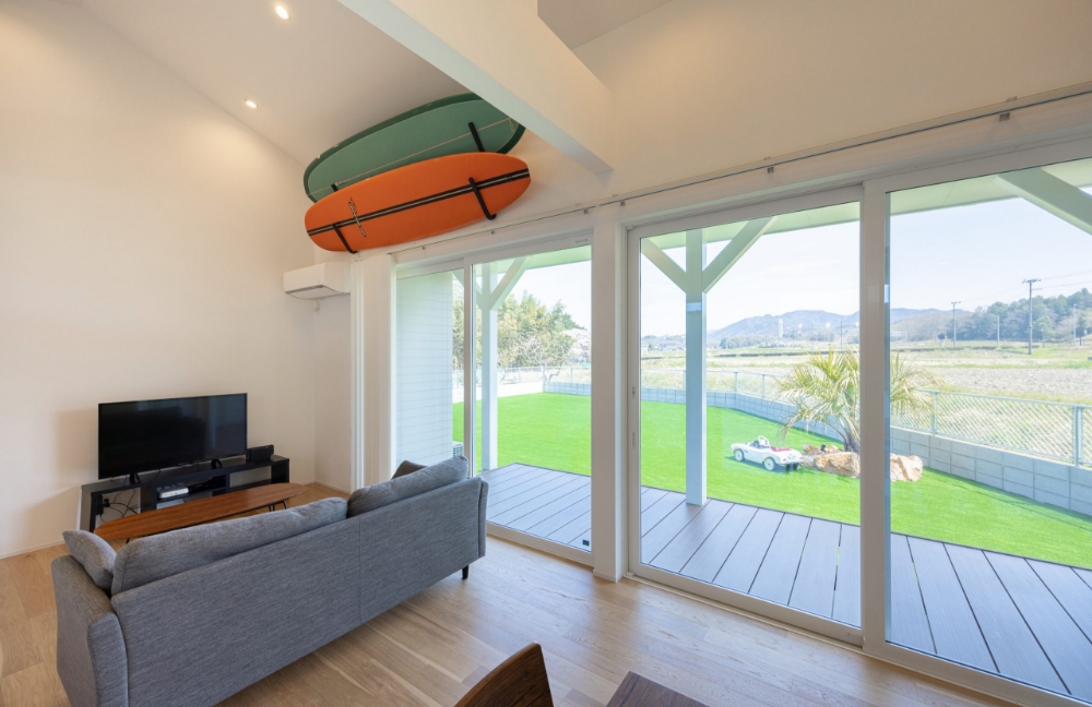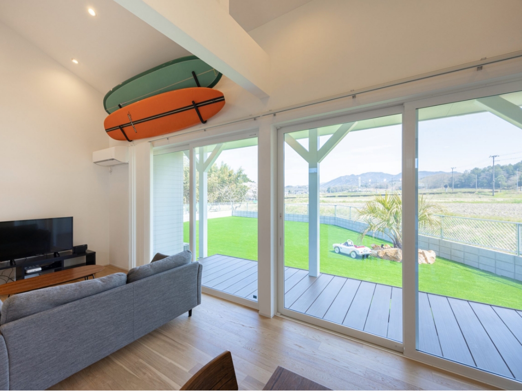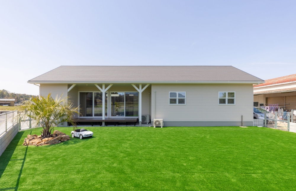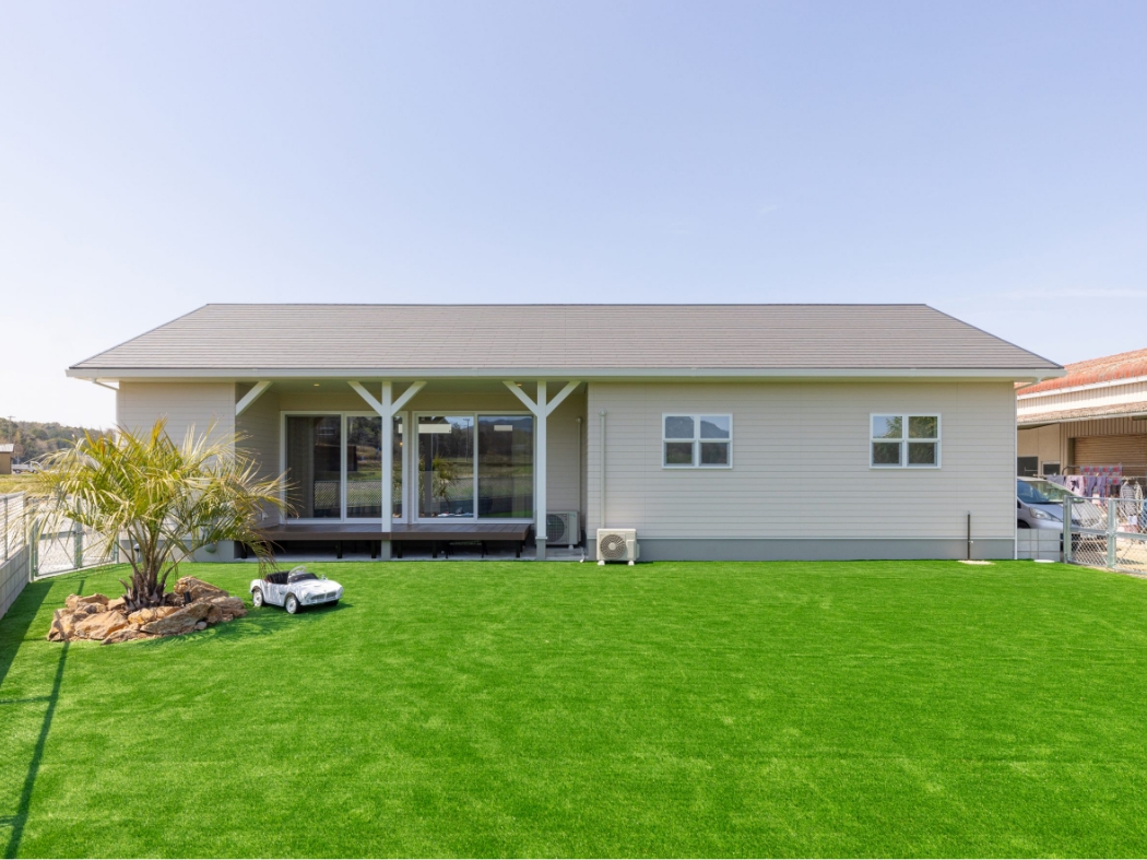 広々とした人工芝の中庭や、キッチン横の“秘密基地”のようなキッズスペース、そして一直線の家事動線など、遊び心と実用性を兼ね備えた工夫が満載。 実際に暮らすご家族のこだわりや、日々の暮らしで感じる快適さについてもご紹介します。