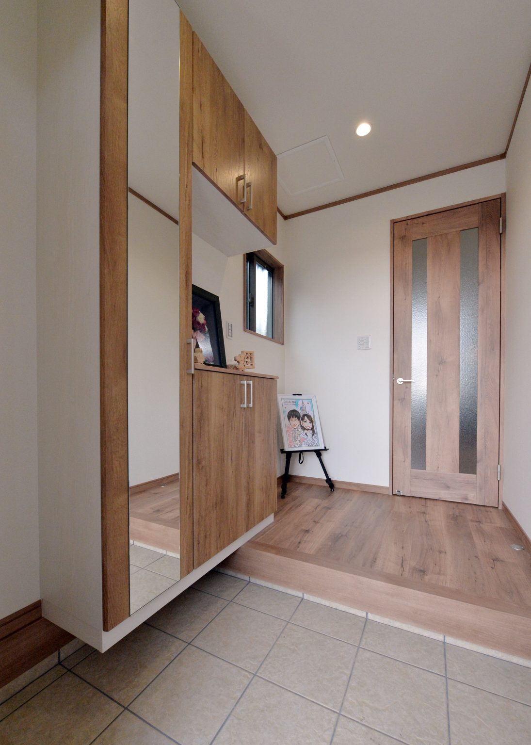 次に挙げられるお家の特徴は、使い勝手の良い玄関です。外出前の準備や帰宅時の動線をスムーズにし、家族みんなが快適に使えるように設計されています。 玄関には大きな姿見を設置し、家を出る前に身だしなみをしっかりチェックできるように。さらに、広い土間と大容量の収納を備え、靴やアウトドア用品などをすっきり収納できるため、玄関が散らかる心配がありません。 また、採光を考慮し窓を配置することで、玄関全体が明るく開放的な空間に。毎日の出入りが気持ちよくなる、機能性とデザインを両立させた玄関になりました。