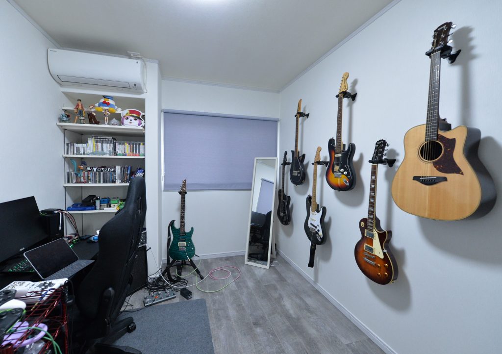 和を感じる畳コーナーと収納力抜群なギター部屋がある家