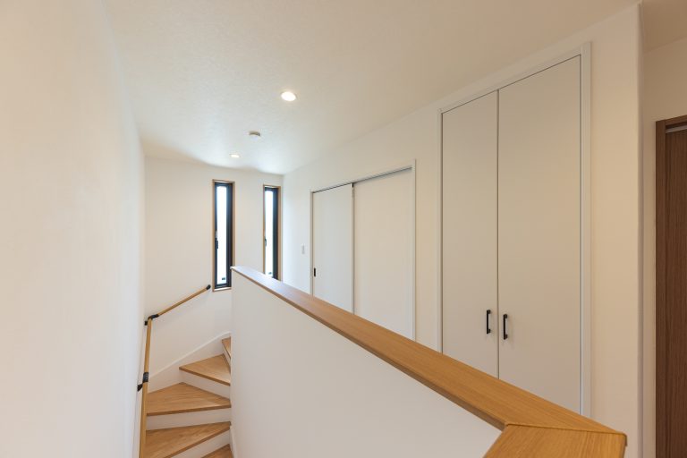 オーナー様ご夫婦の家づくりの要望は、収納が多い環境にしたいとのことでした。また、昼間は電気をつけなくても自然と明るい環境や育児と家事が両立しやすい環境にしたいという思いがあったようです。