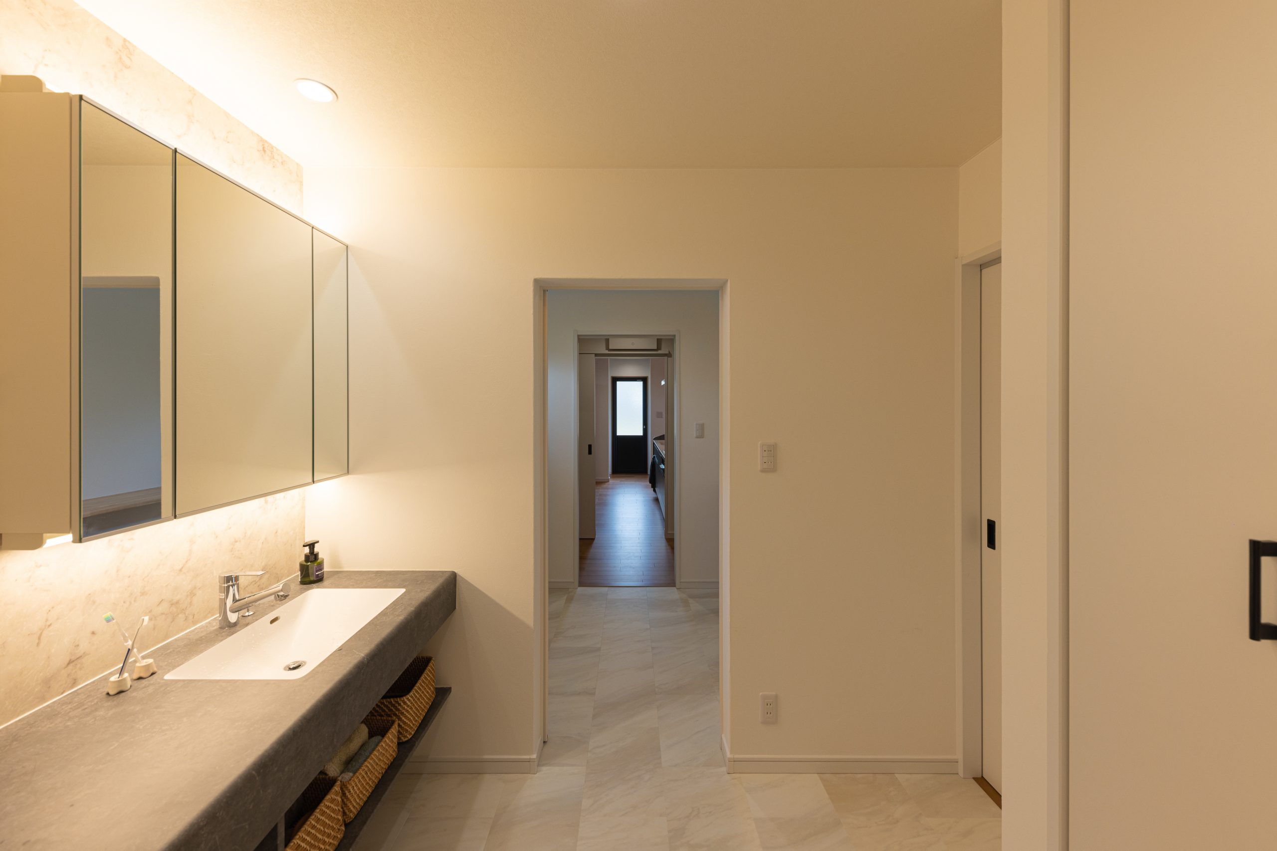 続いて紹介するのは、ランドリースペースです。ランドリースペースからファミリークローゼットを通ってキッチンに。洗濯した衣類をすぐに片づけできる動線が魅力です。