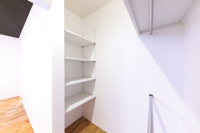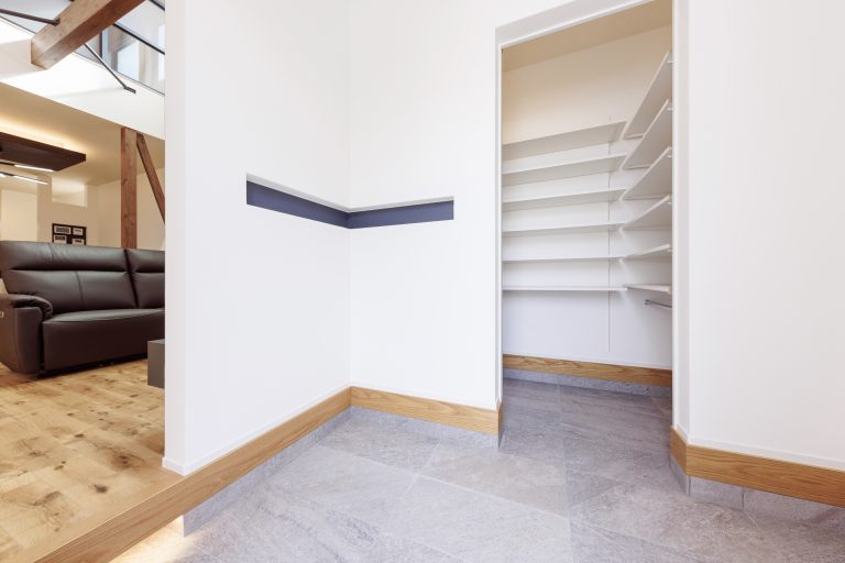 最後に、玄関横のシューズクロークは可動式の棚を多く設置しました。下段には広いスペースがあるため、大きい物も収納可能です。