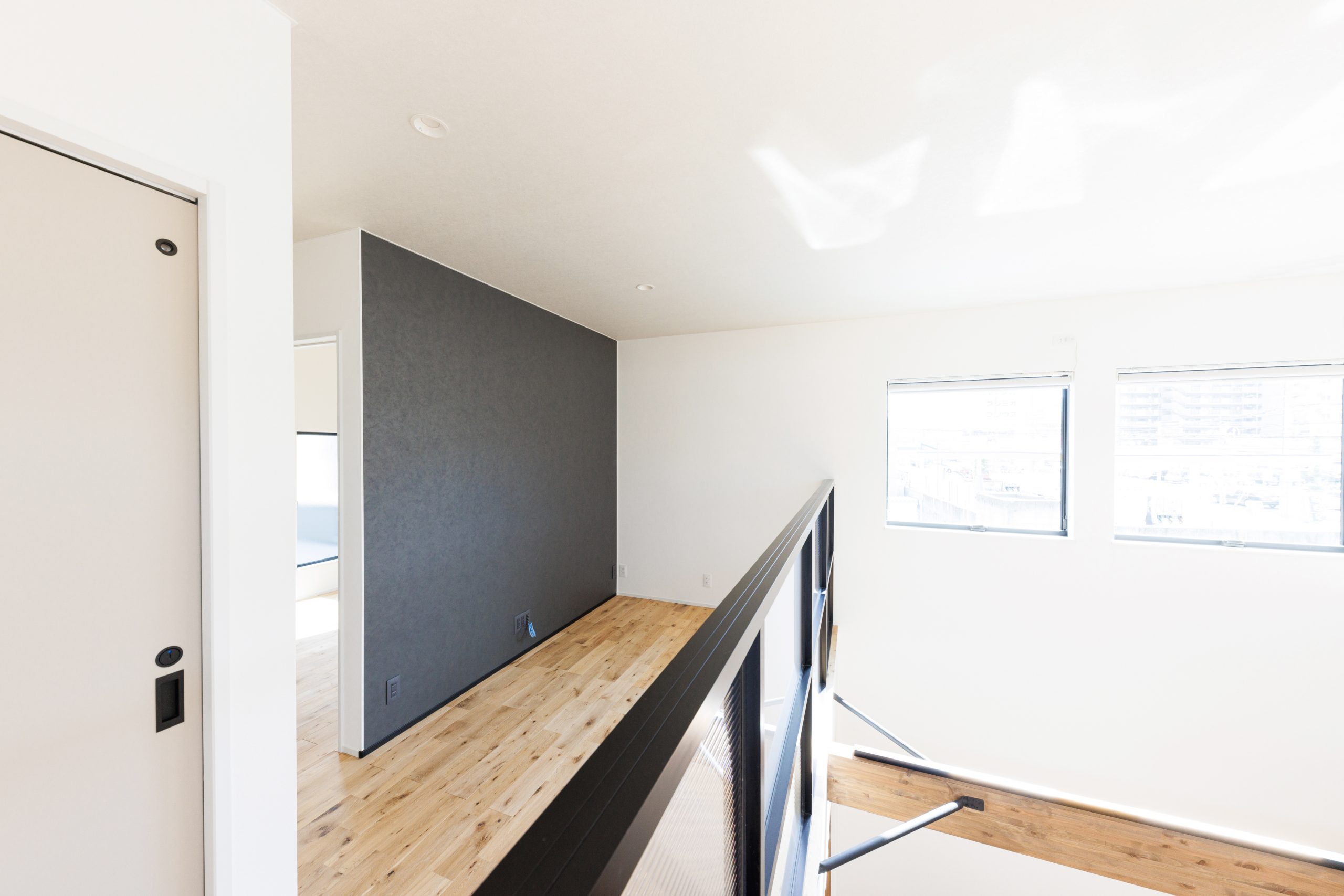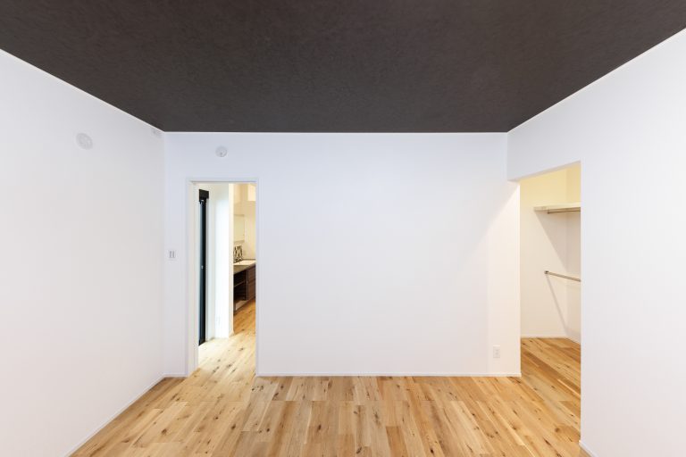 さらにホテルライクな家にしたいといったご要望には、寝室のデザインについて提案させていただきました・寝室は天井のみカラークロスを変更し、メリハリをつけています。上部窓を採用することで優しい光が入ってくるようにしました。