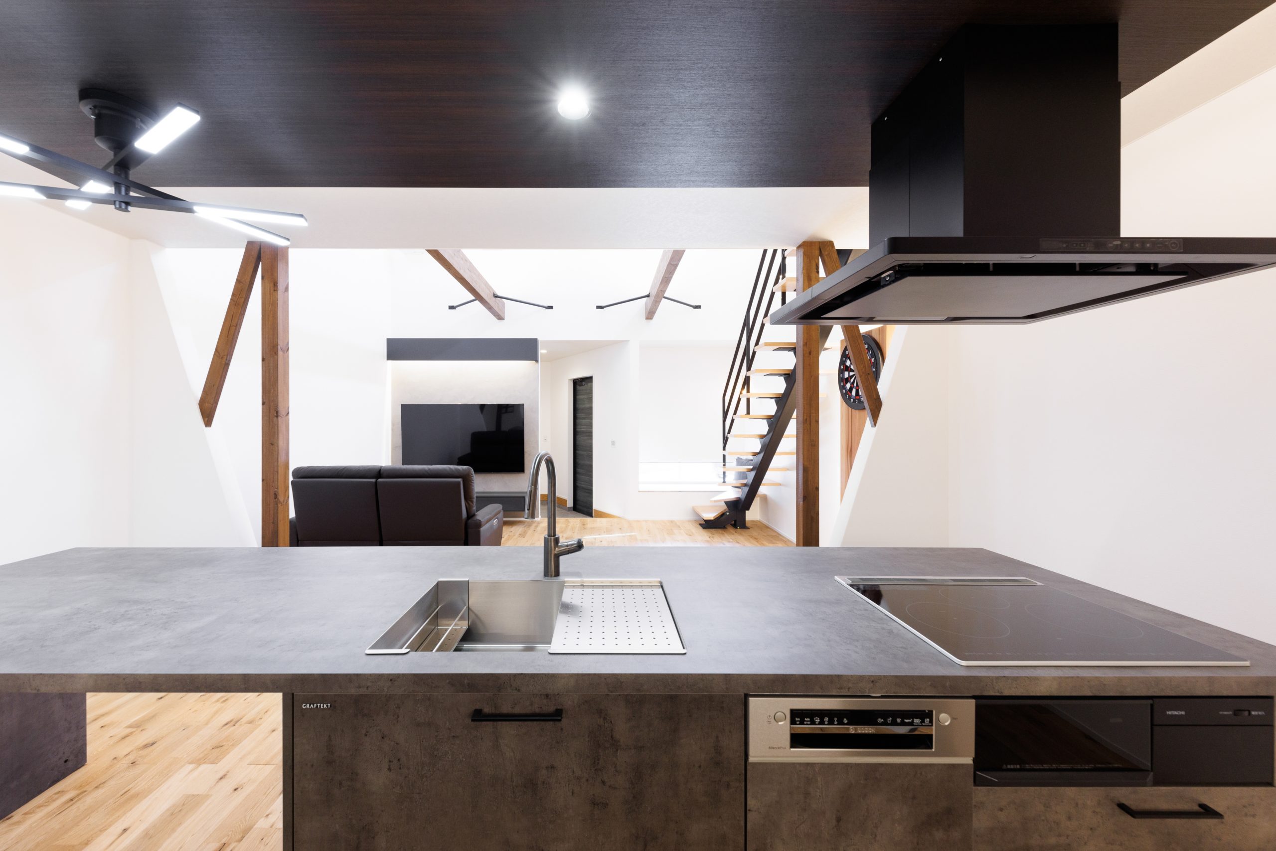 今回紹介する事例は、リビングの一角にダーツボードや各所に造作家具がある、ホテルライクな住宅です。いくつになってもご家族全員が楽しく笑顔でいられるように、また快適性や開放感があふれるようにつくられた住まいには、どのような特徴があるのでしょうか。オーナー様ご夫婦に、家づくりのきっかけや要望、お家の特徴を伺いました。
