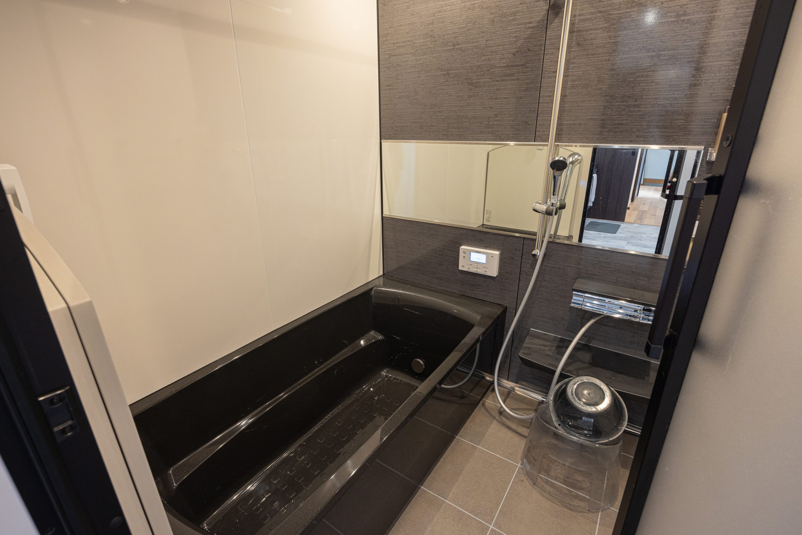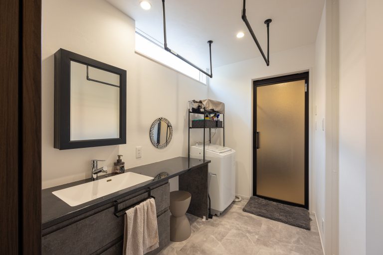 特にリビングの続きに洗面所、風呂場などを配置し、調理中の空き時間に洗濯機を回せるようにした間取りは、大きな特徴です。洗面所には物干し竿も設置してあるため部屋干しも可能であるほか、洗面所と玄関も近いため、帰宅後の手洗いもスムーズにおこなえるでしょう。