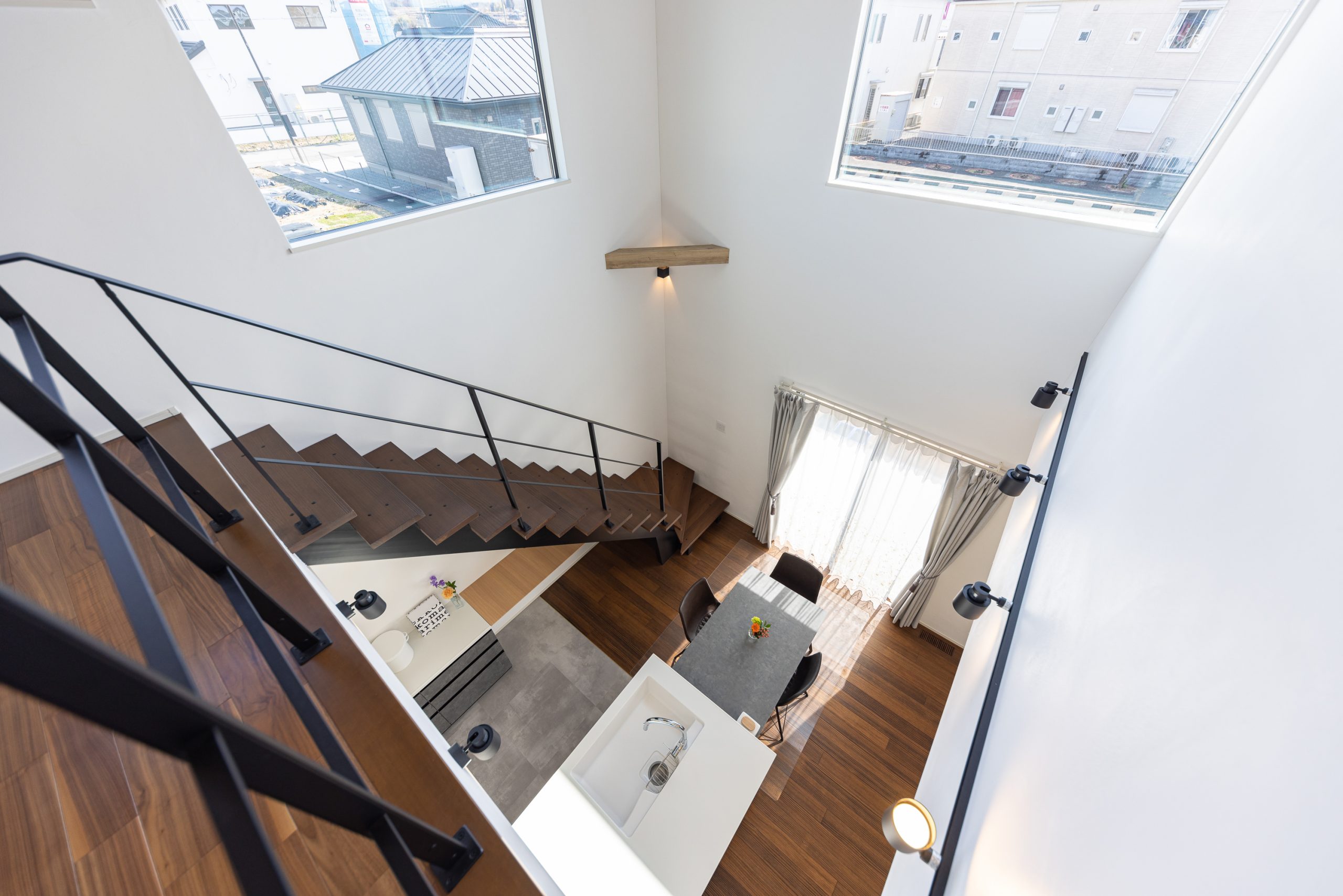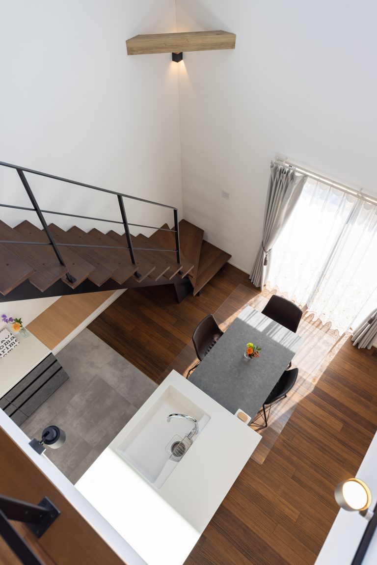 オーナー様ご夫婦の家づくりの要望は、開放感のある吹き抜けと、効率的な家事動線でした。賃貸ではなかなか叶わない吹き抜けの住宅に憧れがあったため、家族がくつろげるリビングかダイニングに吹き抜けをつくりたいと思ったそうです。 また賃貸では家事の際に家の中を行った来たりとムダな動きをしていると感じていたため、家事動線の良い設計も要望に加えられました。土地探しから手伝ってくれるハウスメーカーに絞り、いくつかの見学会に参加したところ、自分たちの要望に応えてくれると感じたキノエデザインにお願いしようと意見が一致したそうです。 オーナー様ご夫婦の要望を叶えたお家には、どのような特徴があるのか、順番にご紹介します。
