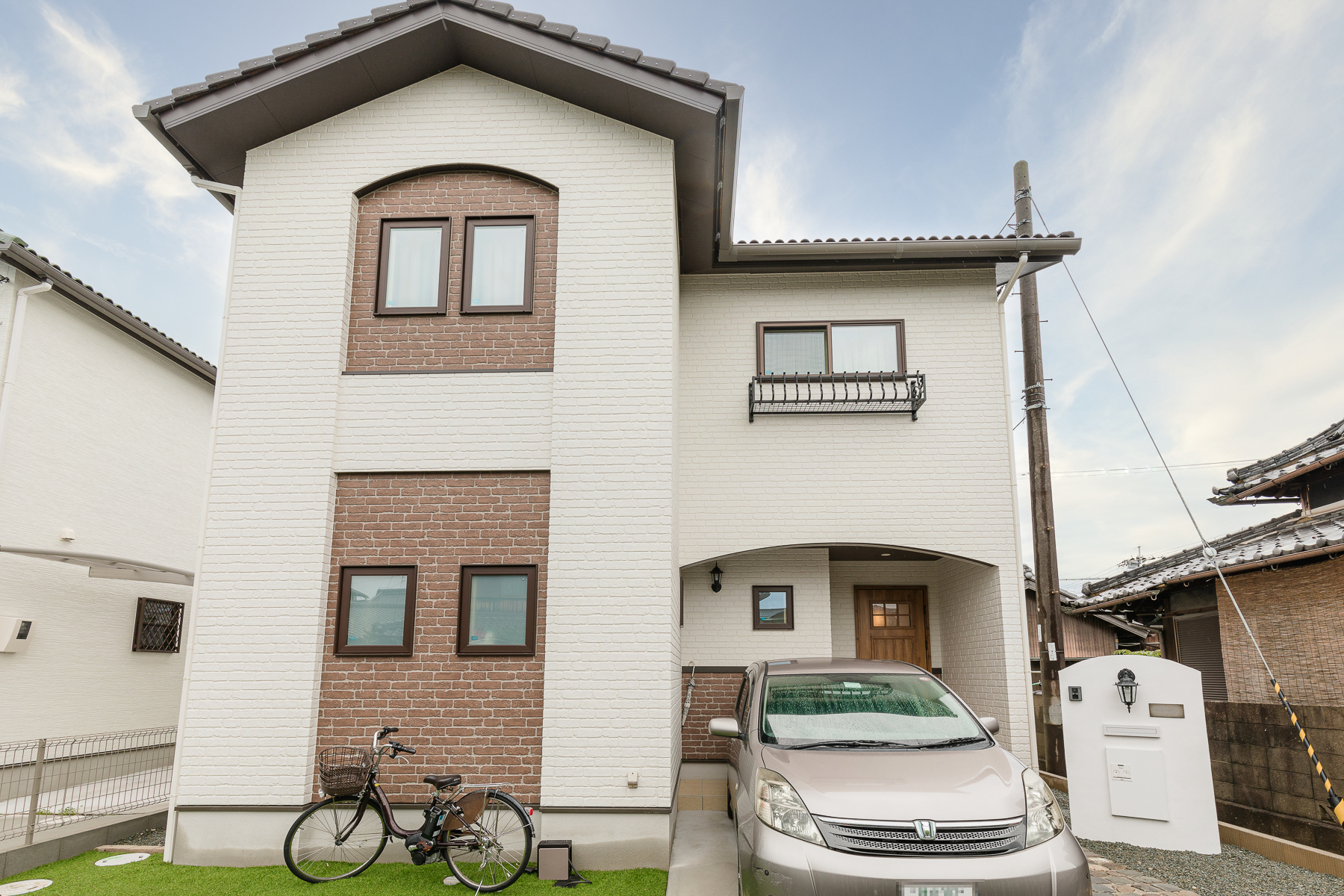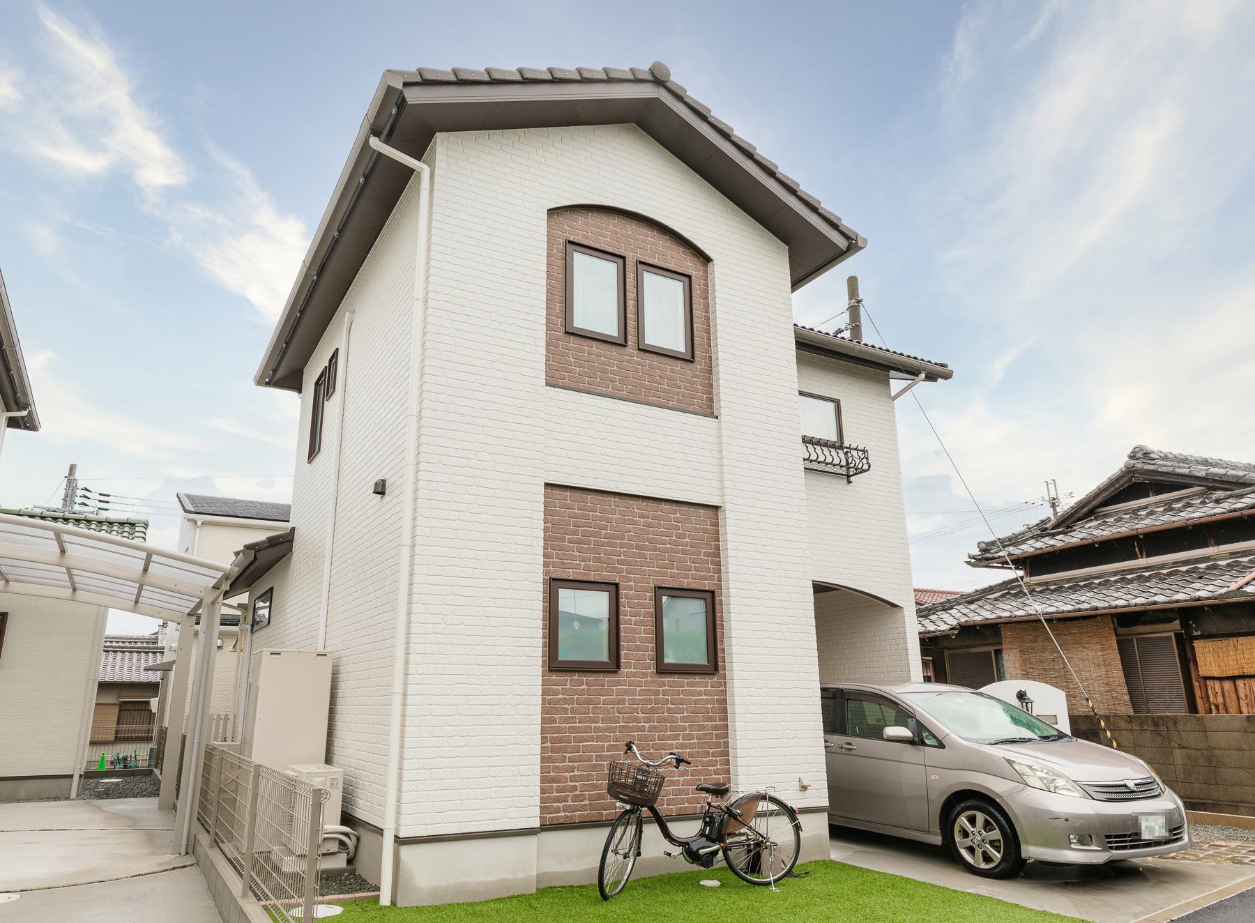 もともと早めにマイホームを手に入れたいと考えていたオーナー様ご夫婦は、お休みの日にあちこちの住宅展示場に足を運ぶことも多かったそうです。「いろいろなメーカーの建売住宅を見ましたが、二人では部屋数が多すぎるものが多くて今ひとつ決め手に欠けるものばかりでした」 さまざまな住宅を見ていくうちに、自分たちにぴったりの家を見つけるなら注文住宅がいいのでは、と話すようになったそうです。 「キノエデザインさんに決めたのは、外観がまったくほかのハウスメーカーさんとは違っていたからです。ものすごく可愛くて二人ともひと目で気に入ってしまいました。」外観をきっかけにキノエデザインでの家づくりをご決断いただきました。