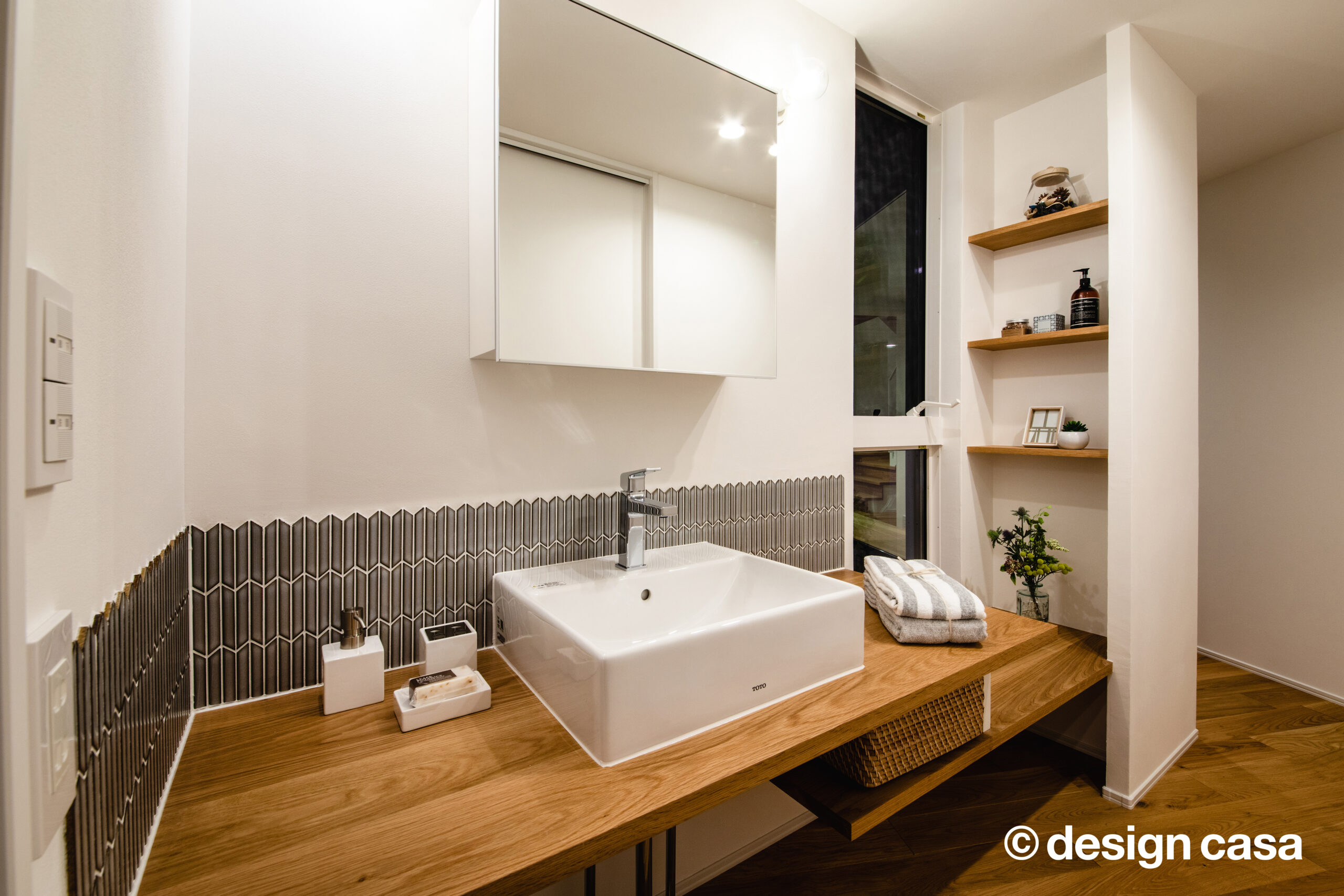 脱衣・洗濯・乾燥・収納を最短距離で結ぶ、効率的なランドリースペース。 明るい空間で、家事の時間さえも心地よいひとときに変わります。